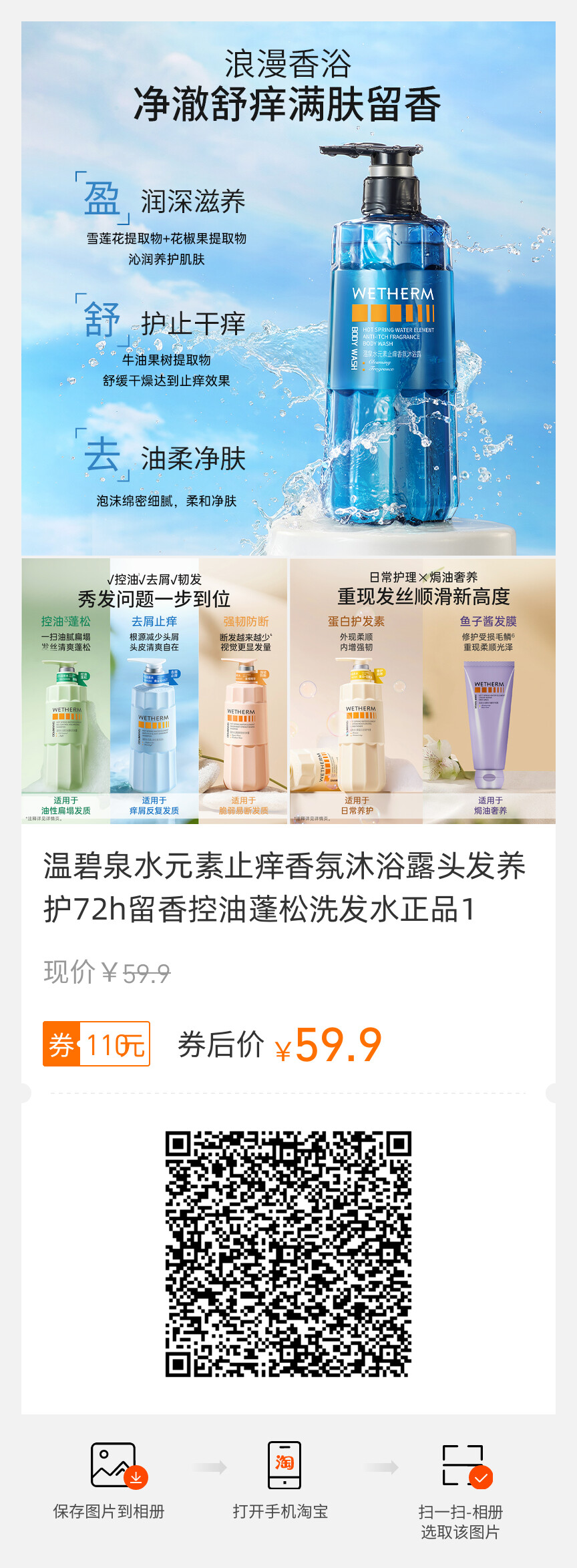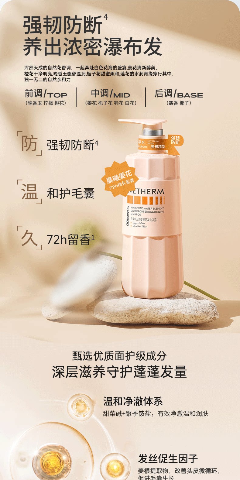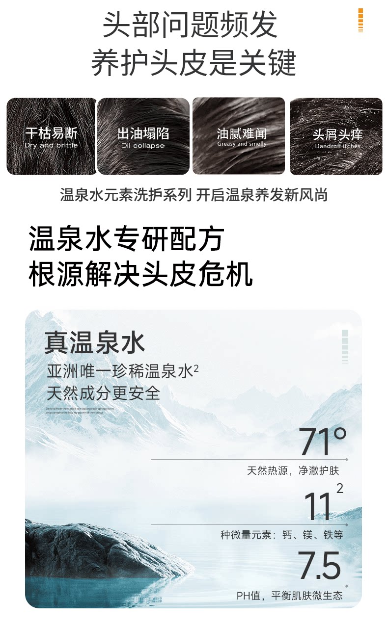 温碧泉水元素止痒香氛沐浴露头发养护72h留香控油蓬松洗发水正品1