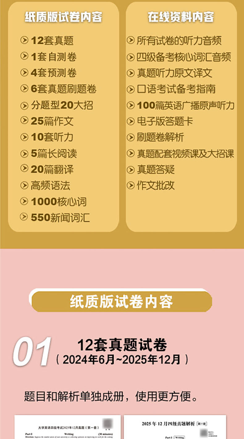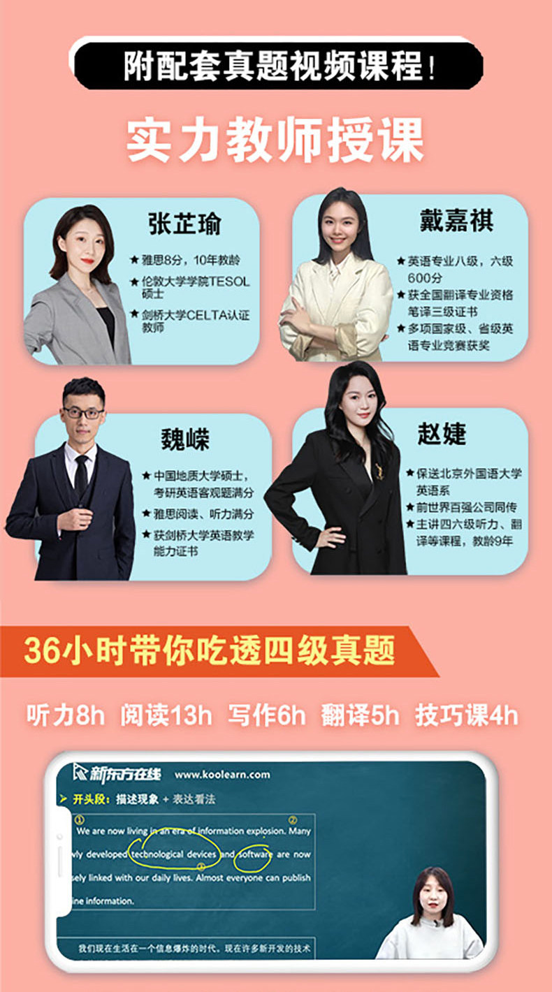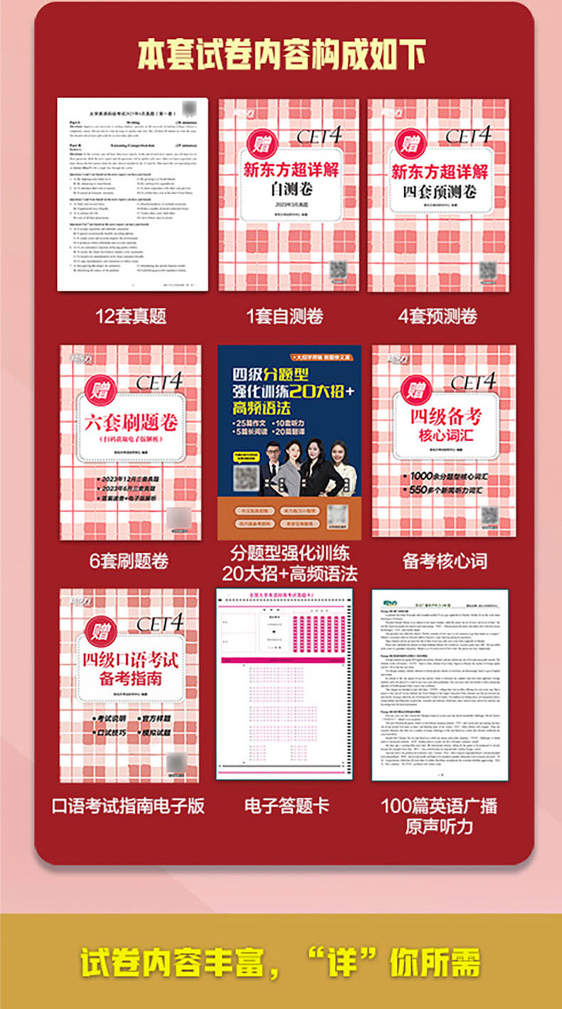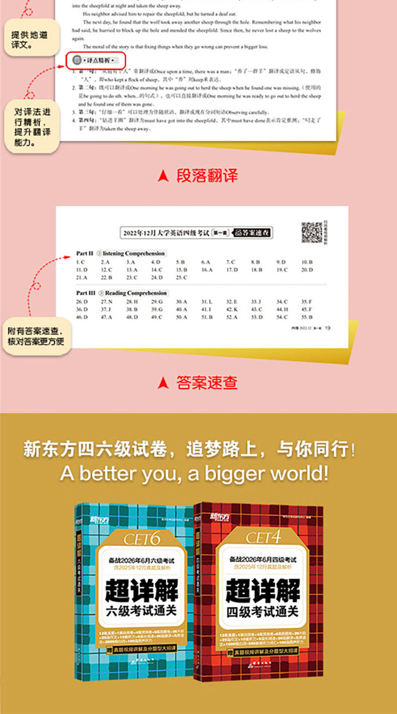 备考2026年6月 新东方四级英语考试真题 大学四六级历年真题超详解模拟试卷词汇书单词阅读理解听力翻译作文专项预测训练资料cet4