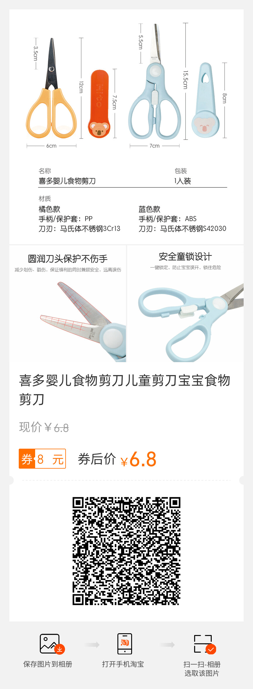 喜多、婴儿食物剪刀、儿童剪刀、宝宝食物、安全实用、便携设计