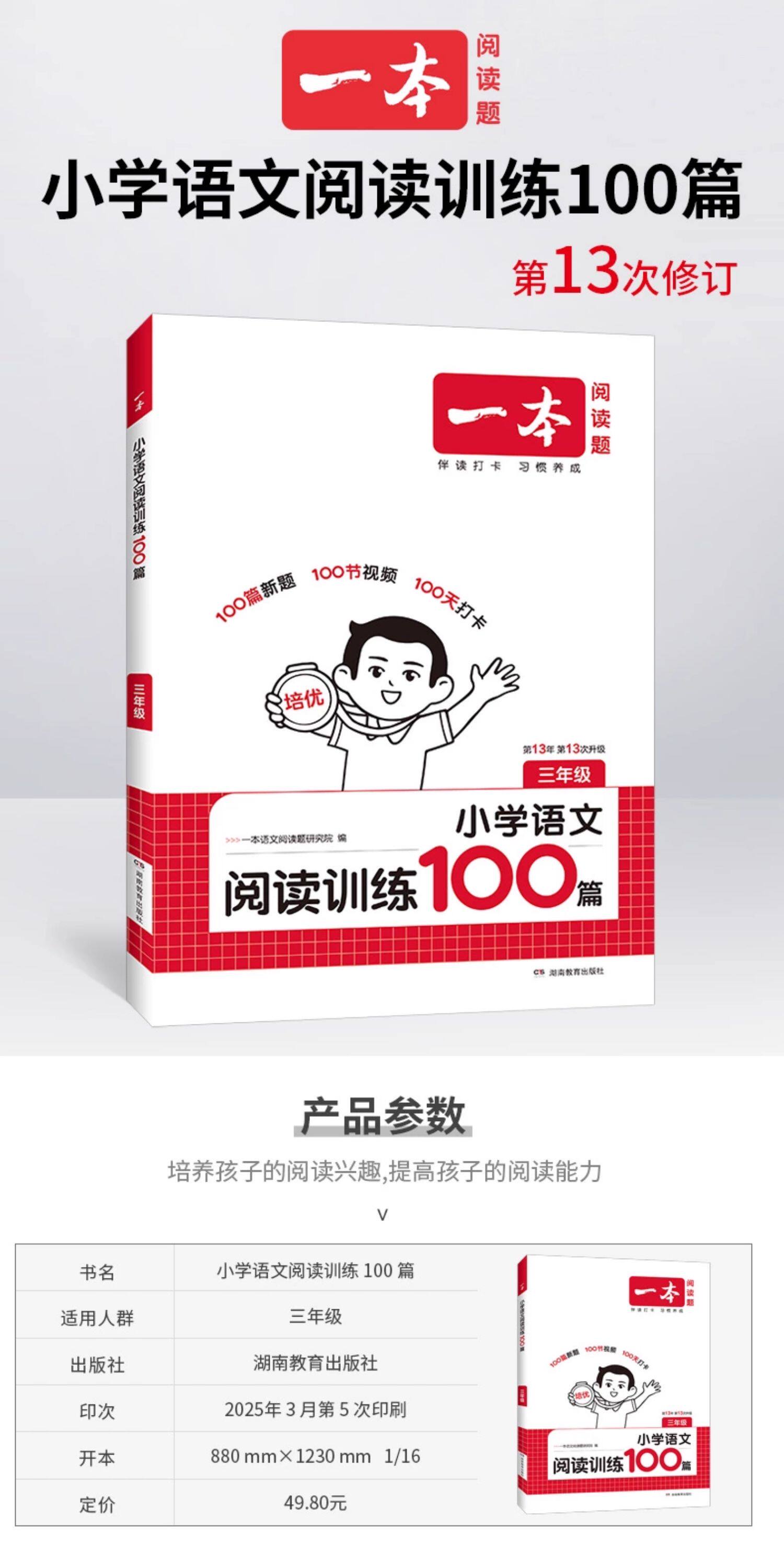 2026一本阅读理解小学语文一本阅读训练100篇一百篇三年级二四年级五六真题理解专项训练一起写寒假作业衔接预习一本通人教版旗舰