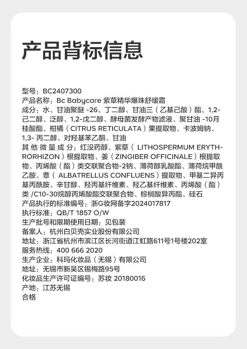babycare、紫草膏、舒缓爆珠霜、婴儿宝宝、蚊虫防护、止痒清凉