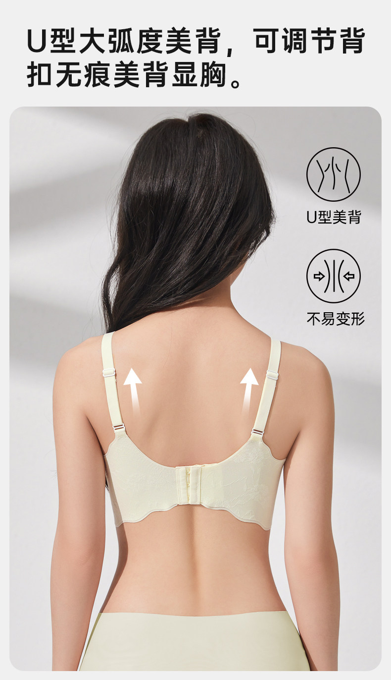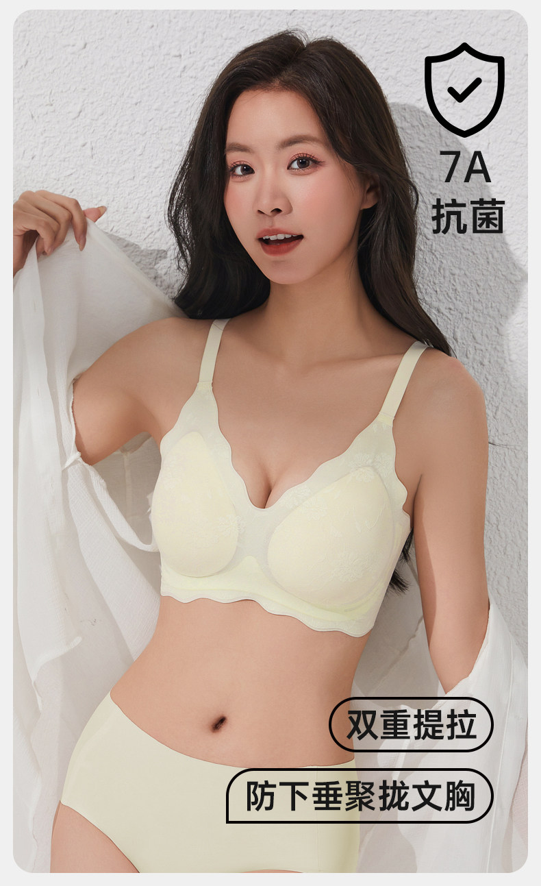 初禾念内衣、提拉聚拢、防下垂、蕾丝印花、固定杯、收副乳
