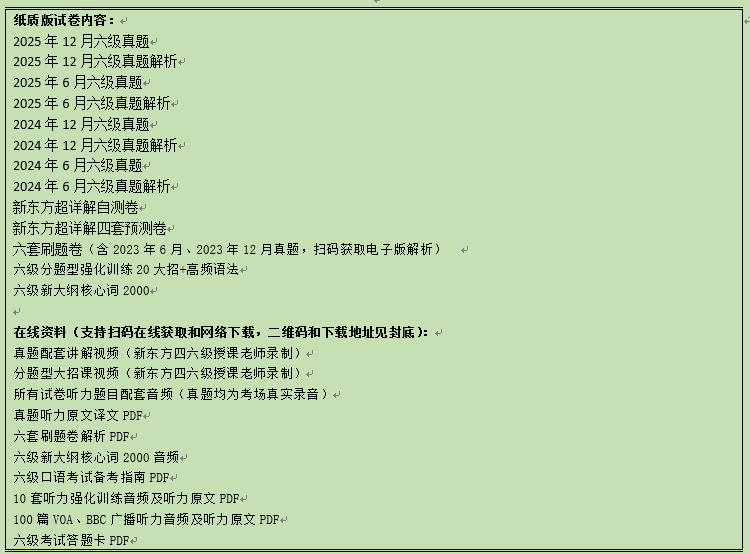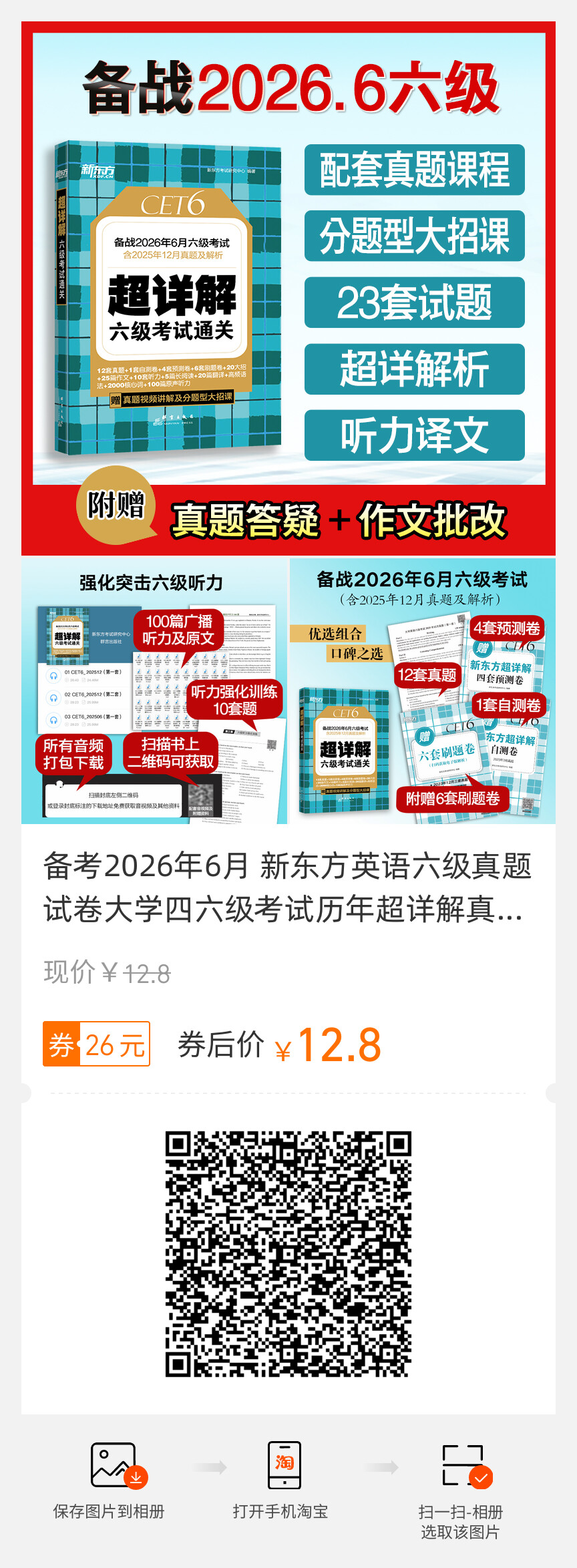 备考2026年6月 新东方英语六级真题试卷大学四六级考试历年超详解真题模拟词汇单词 阅读理解听力翻译写作文预测专项训练资料cet6