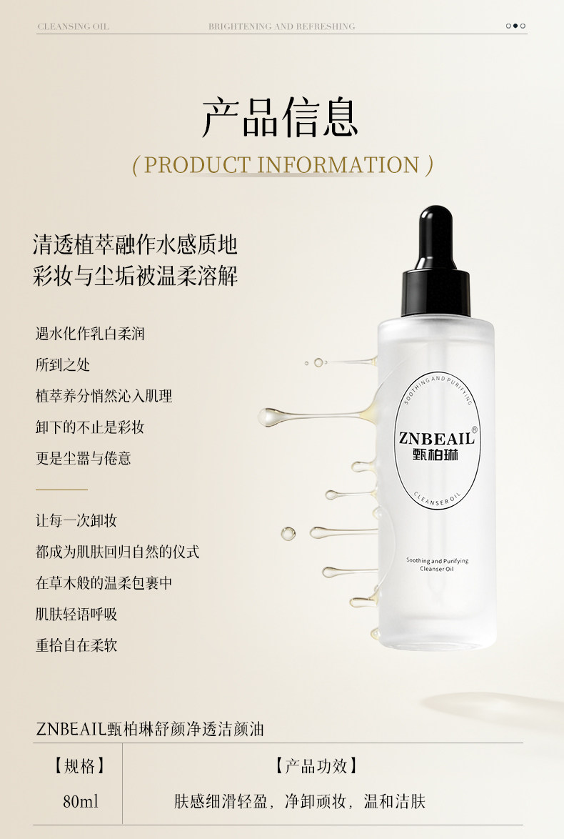 甄柏琳、卸妆油、眼唇脸部、温和卸妆、深层清洁、洗卸养三合一