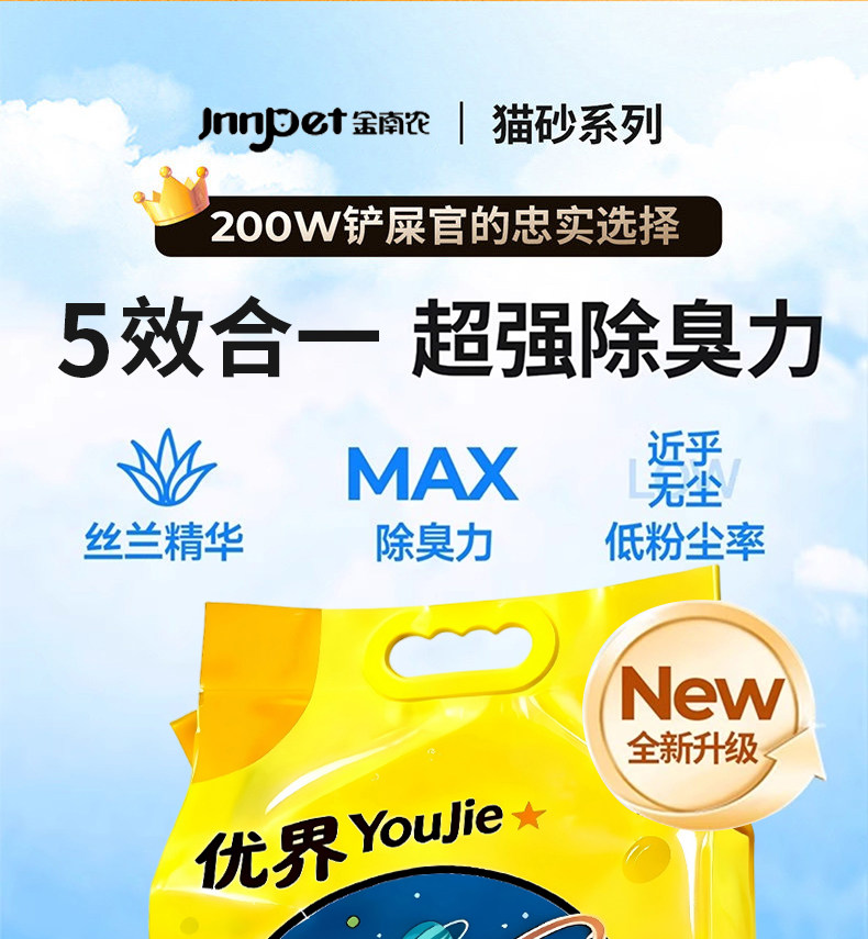 优界、混合猫砂、除臭、几近无尘、植物结团、吸臭去味