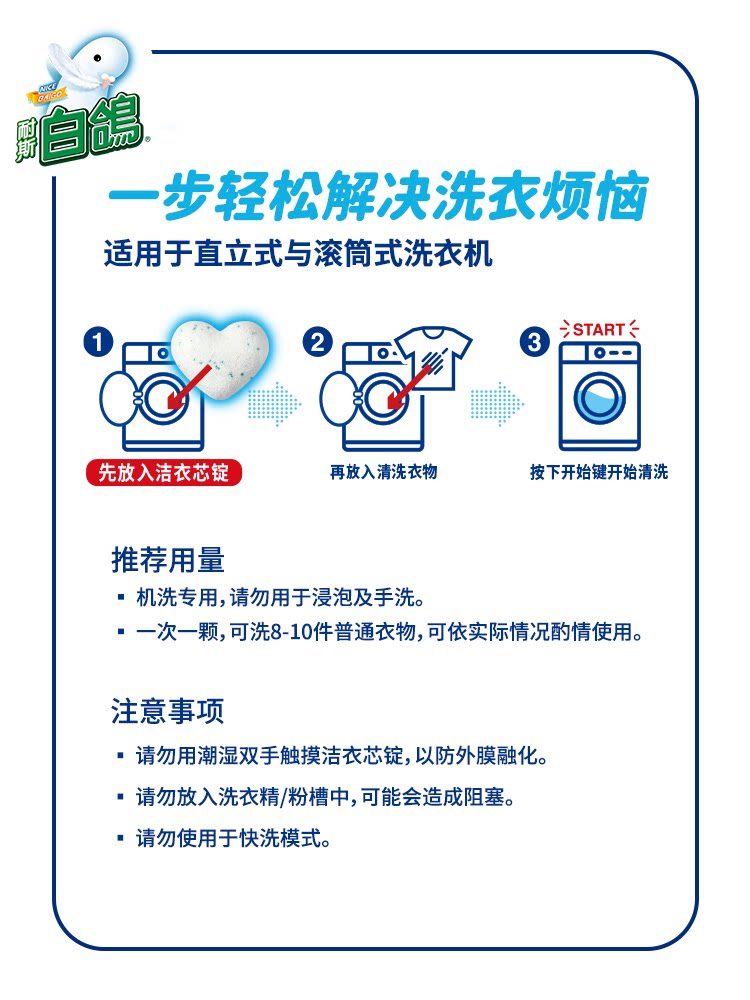 白鸽 天然洁衣芯锭 免浸泡 免搓洗 洗衣粉状凝珠 耐斯