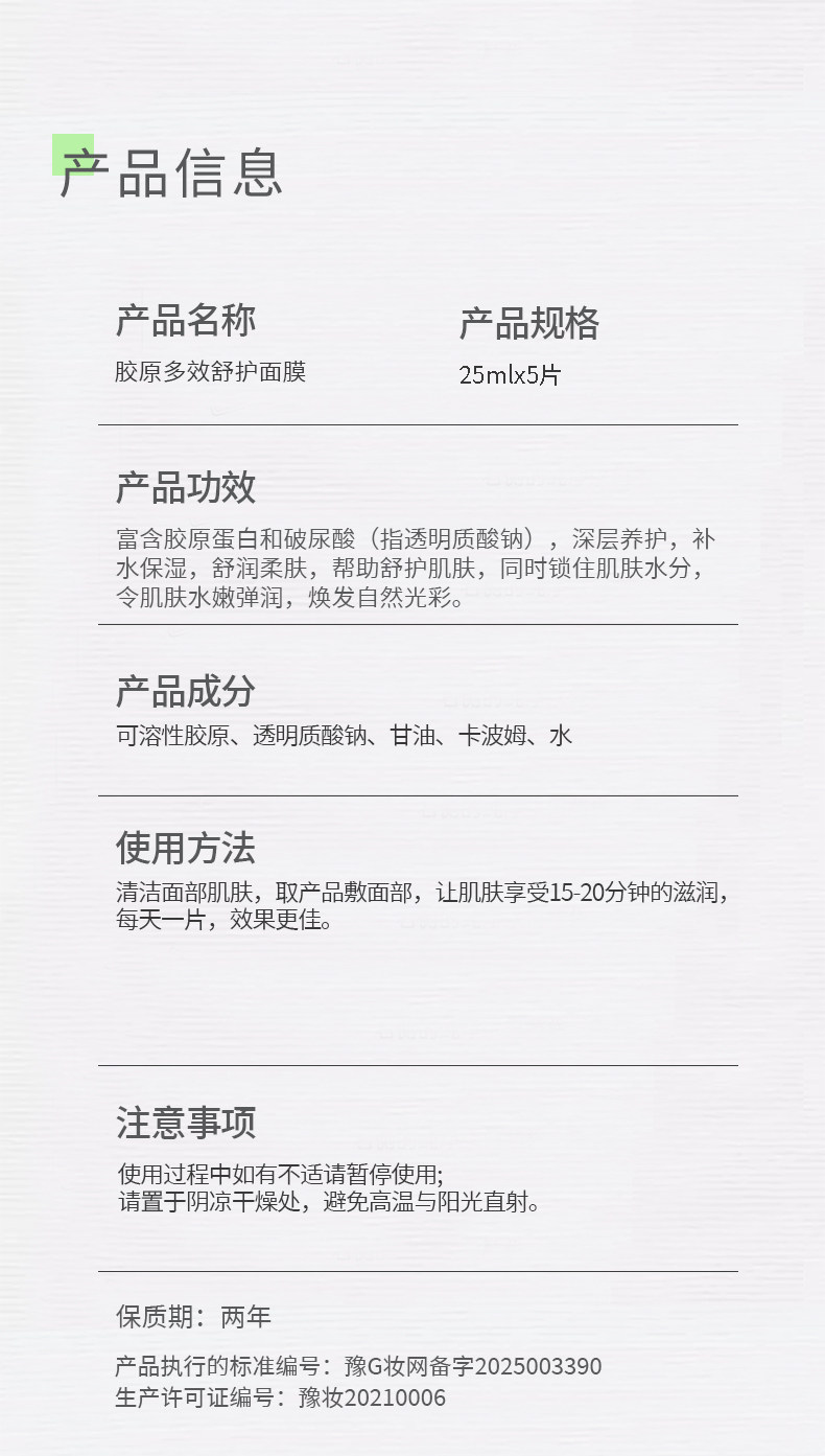 悦尔芙 胶原蛋白 多效舒护面膜 大分子玻尿酸 补水 保湿润肤