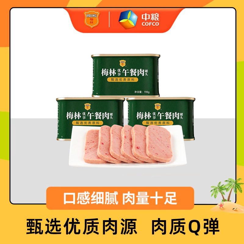 中粮梅林、优享午餐肉、罐头、198g、涮火锅、即食夜宵