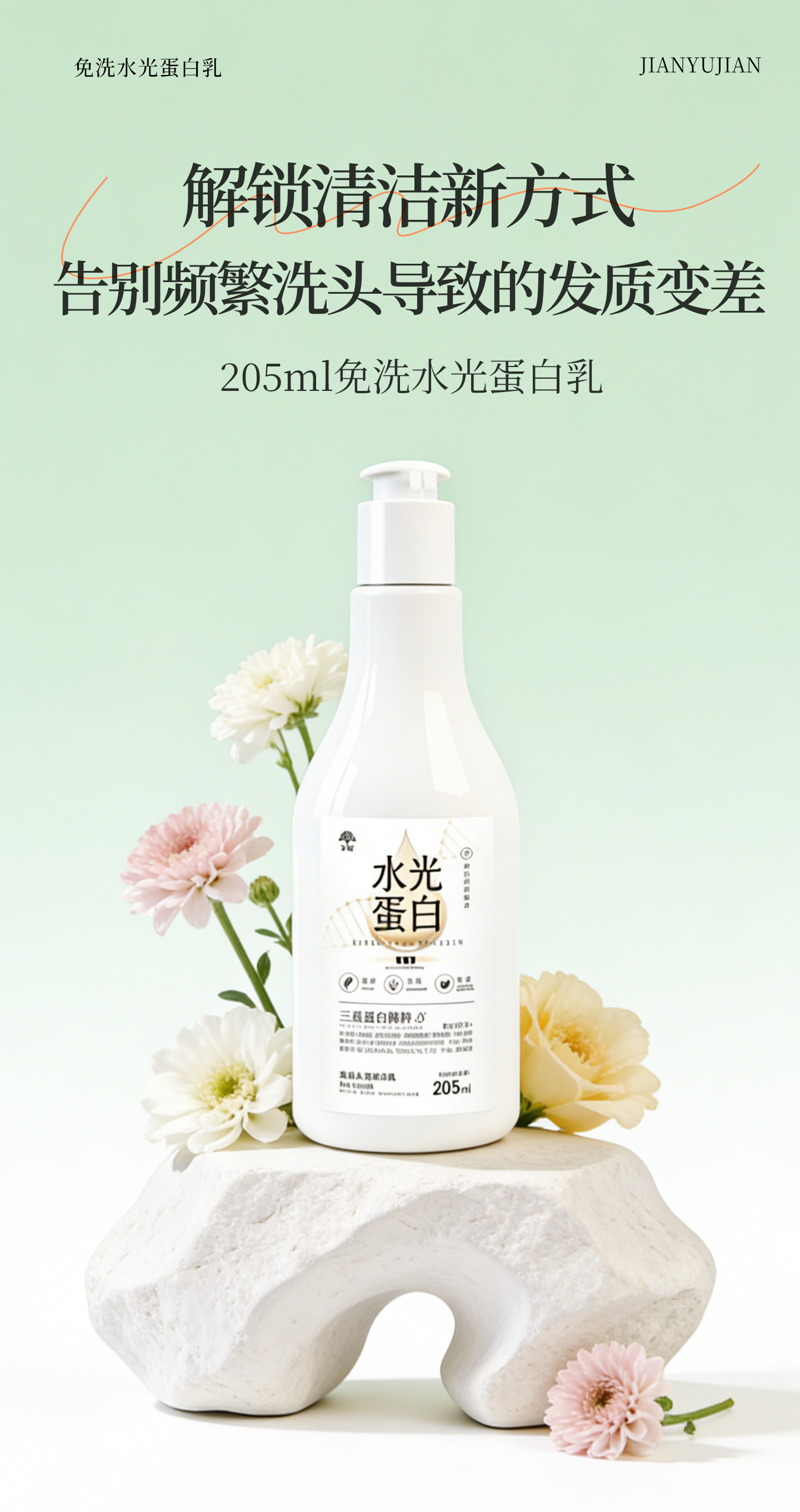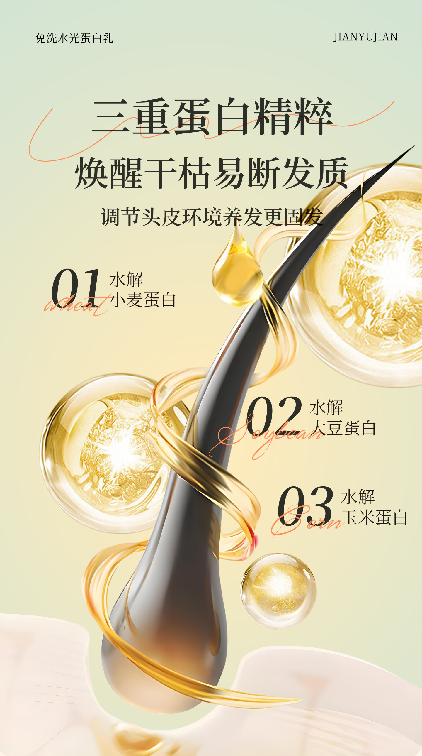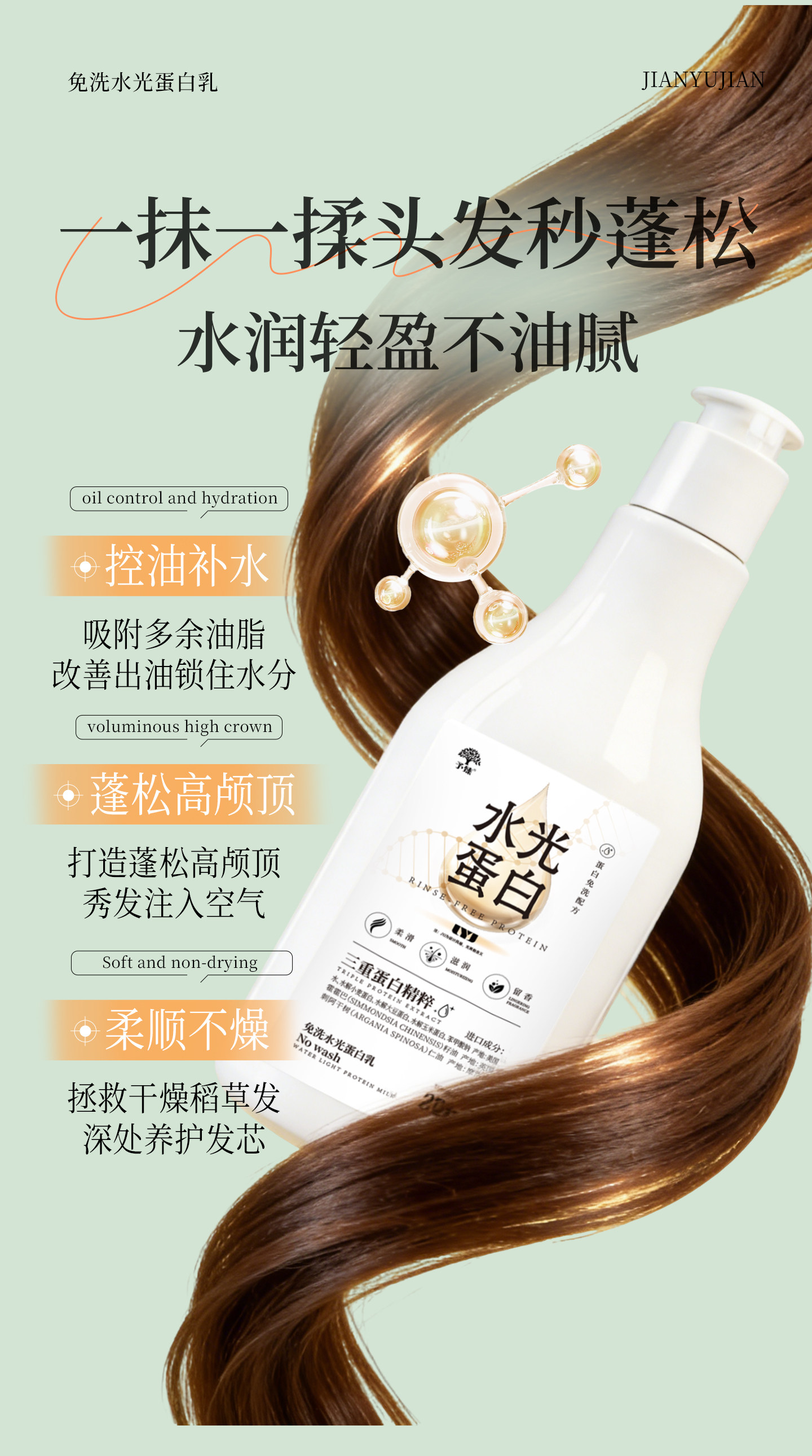 简与简、水光蛋白精华、头发护理、营养精华液、改善顺滑、免洗护发素发膜