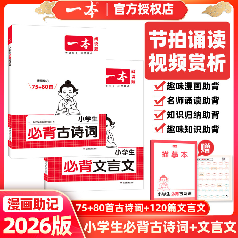 2026版一本小学生必背古诗词漫画助记75+80首文言文120篇人教版一二三四五六年级语文课本上册下册同步必备古诗文带注音配音频视频