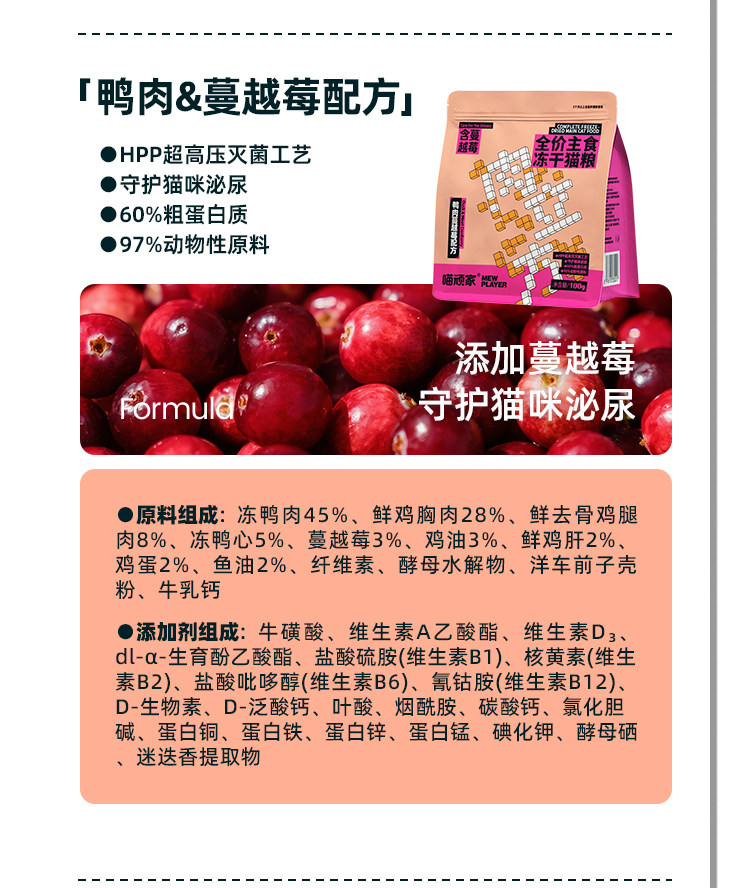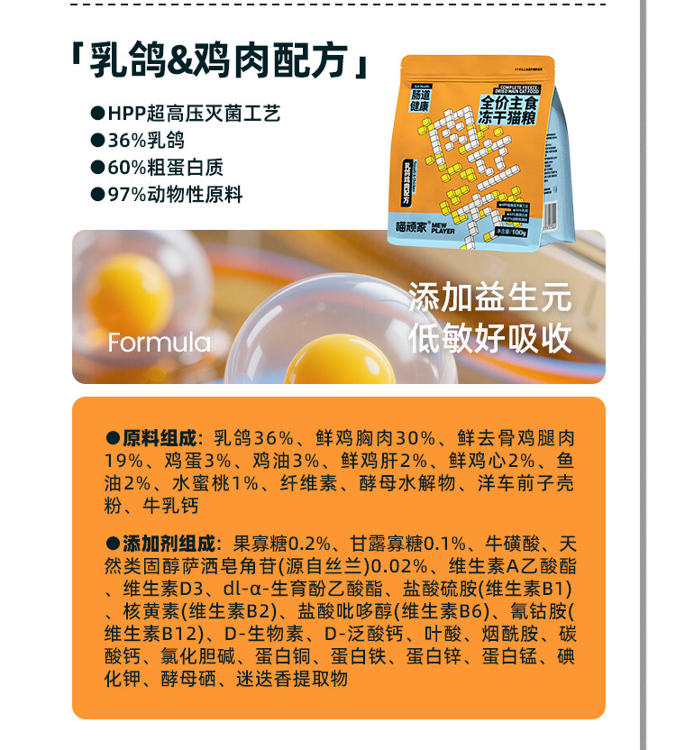 喵顽家主食鲜肉冻干肉立方全价无谷猫粮主粮高蛋白营养均衡