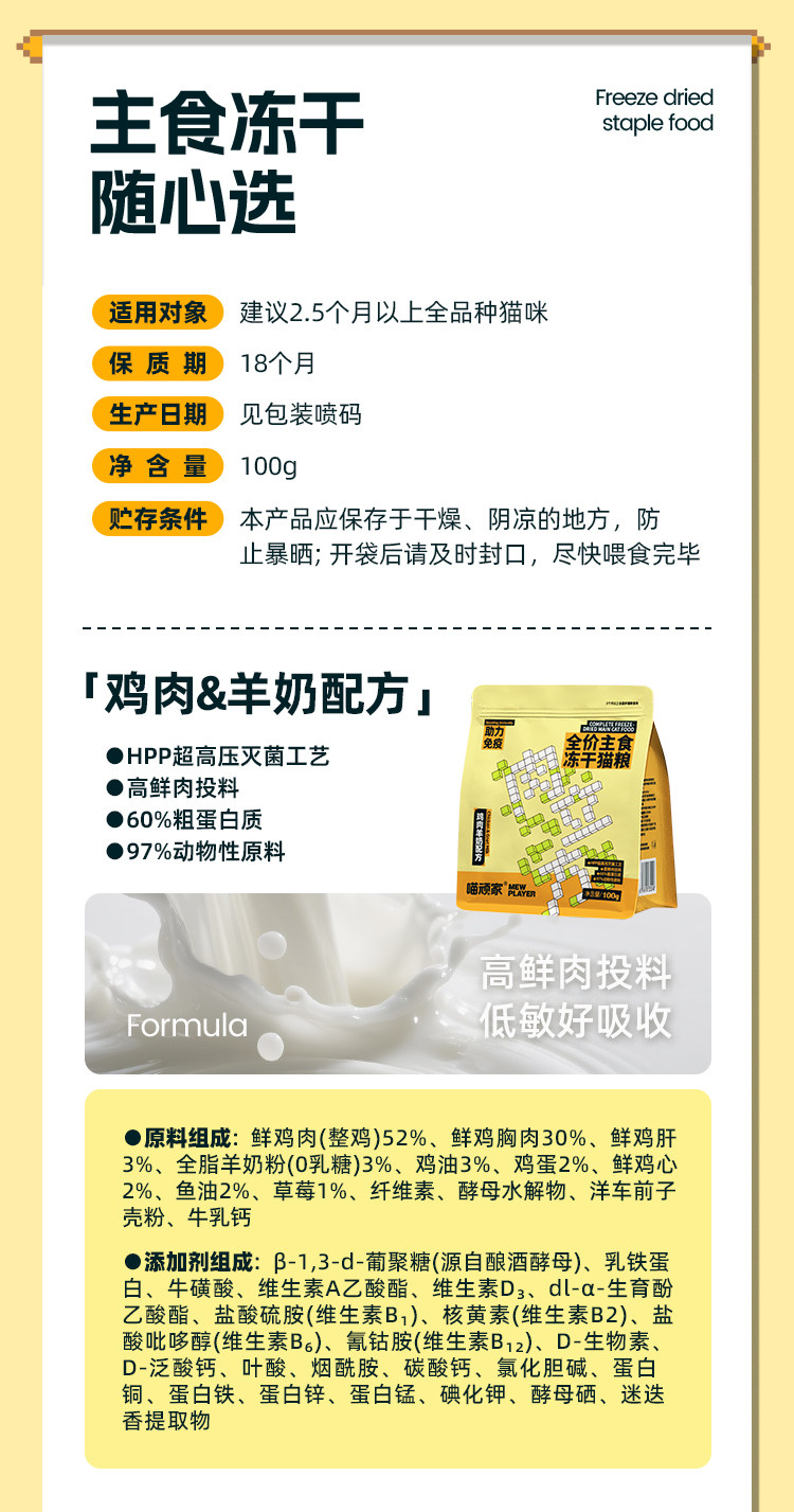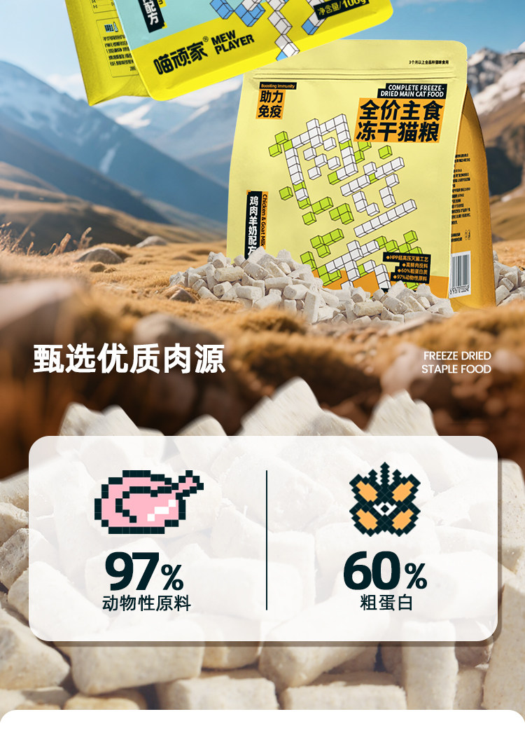 喵顽家 主食鲜肉冻干 肉立方 全价无谷猫粮 主粮 高蛋白 营养均衡