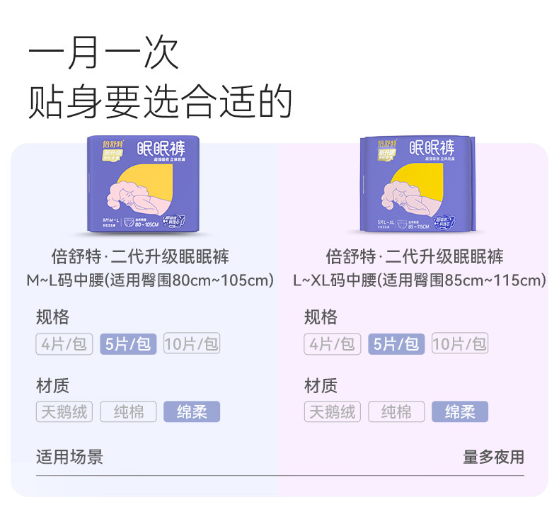倍舒特 升级防漏 安睡裤 卫生巾 夜用 安心夜安裤 经期