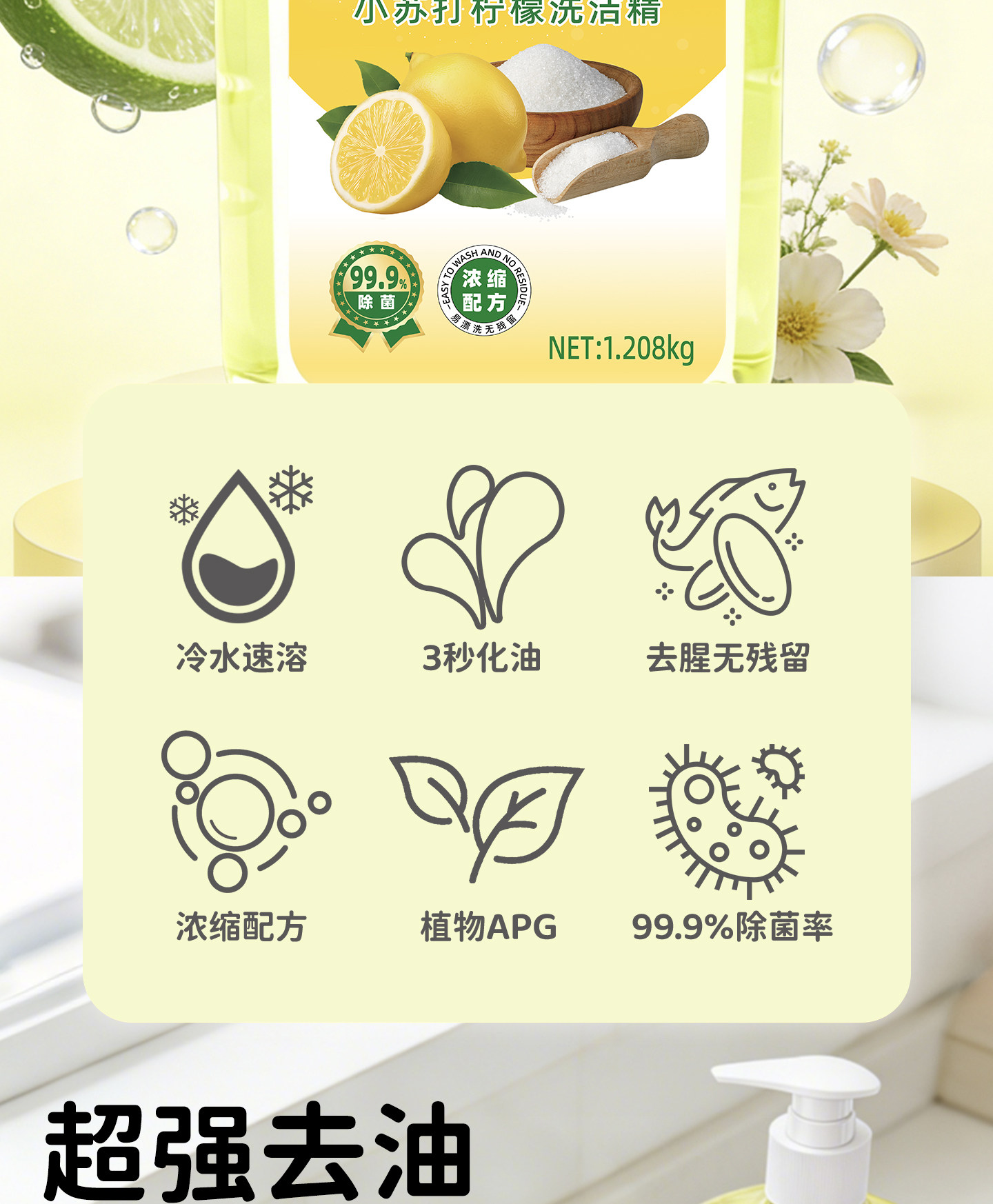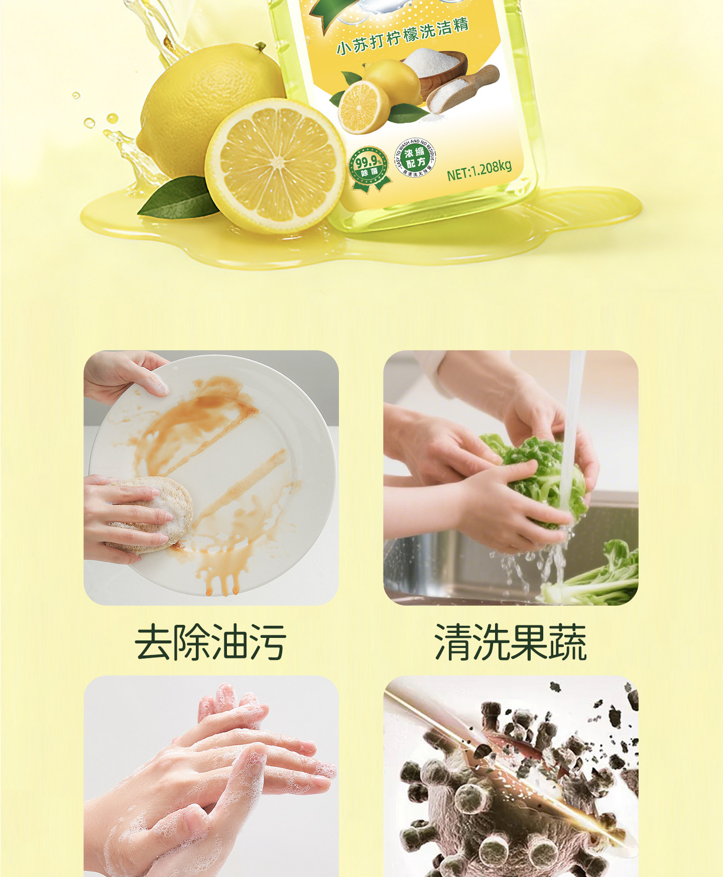 山姆先森正品食品级洗洁精1.208kg*2瓶厨房除油剂餐具水果通用Y2
