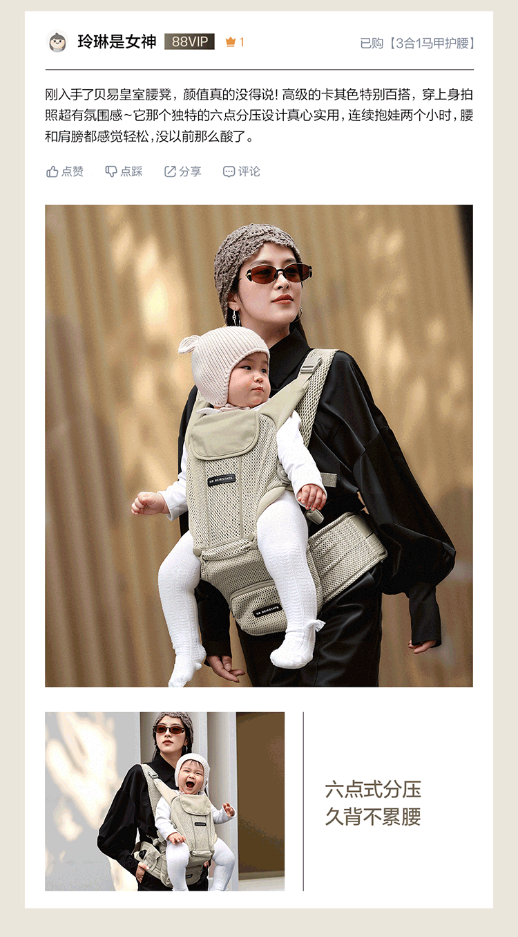 贝易皇室、腰凳婴儿背带、二合一、轻便透气、四季多功能、背娃抱娃神器
