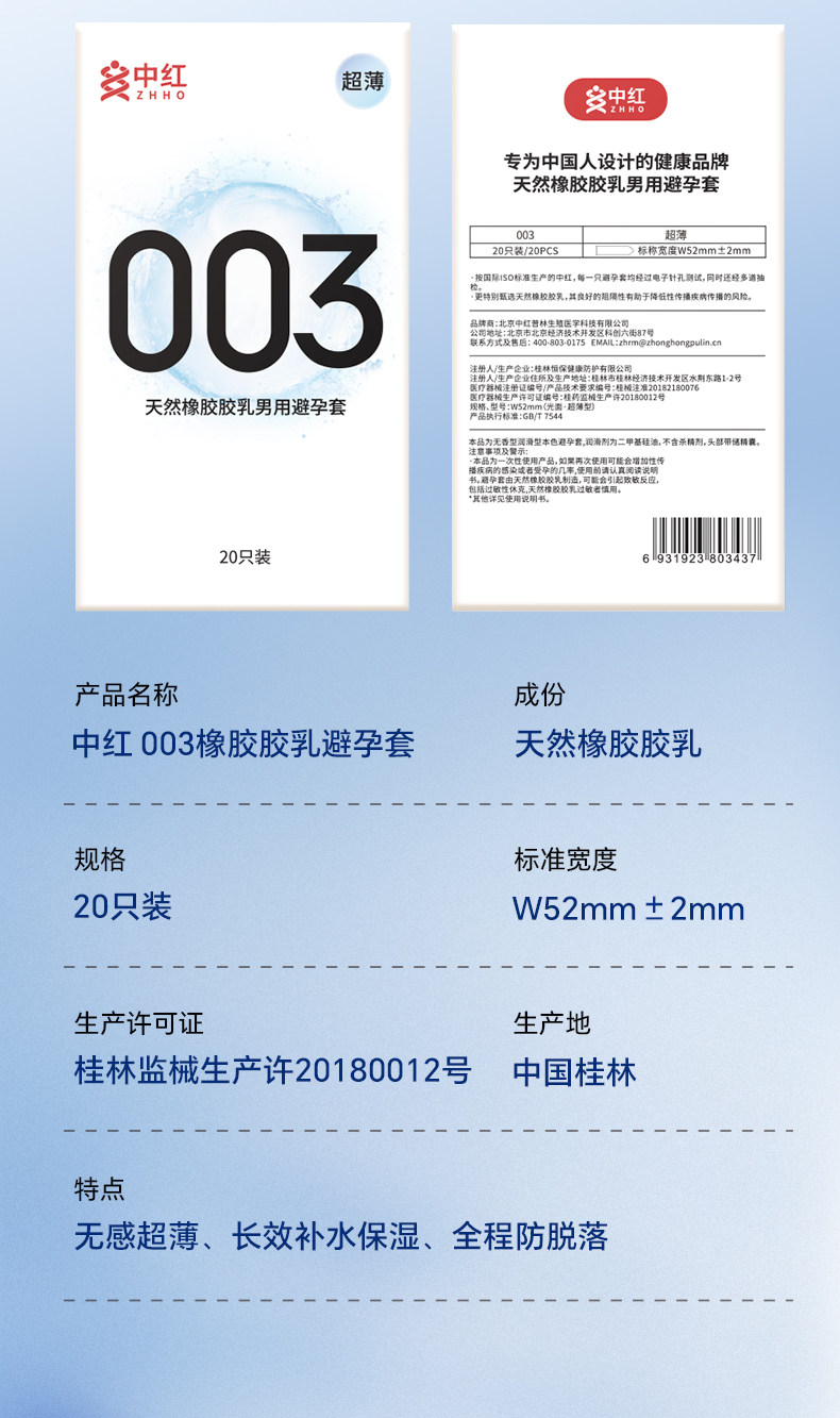 超薄裸入、中红避孕套、超薄003、安全套、水润滑、情趣用品