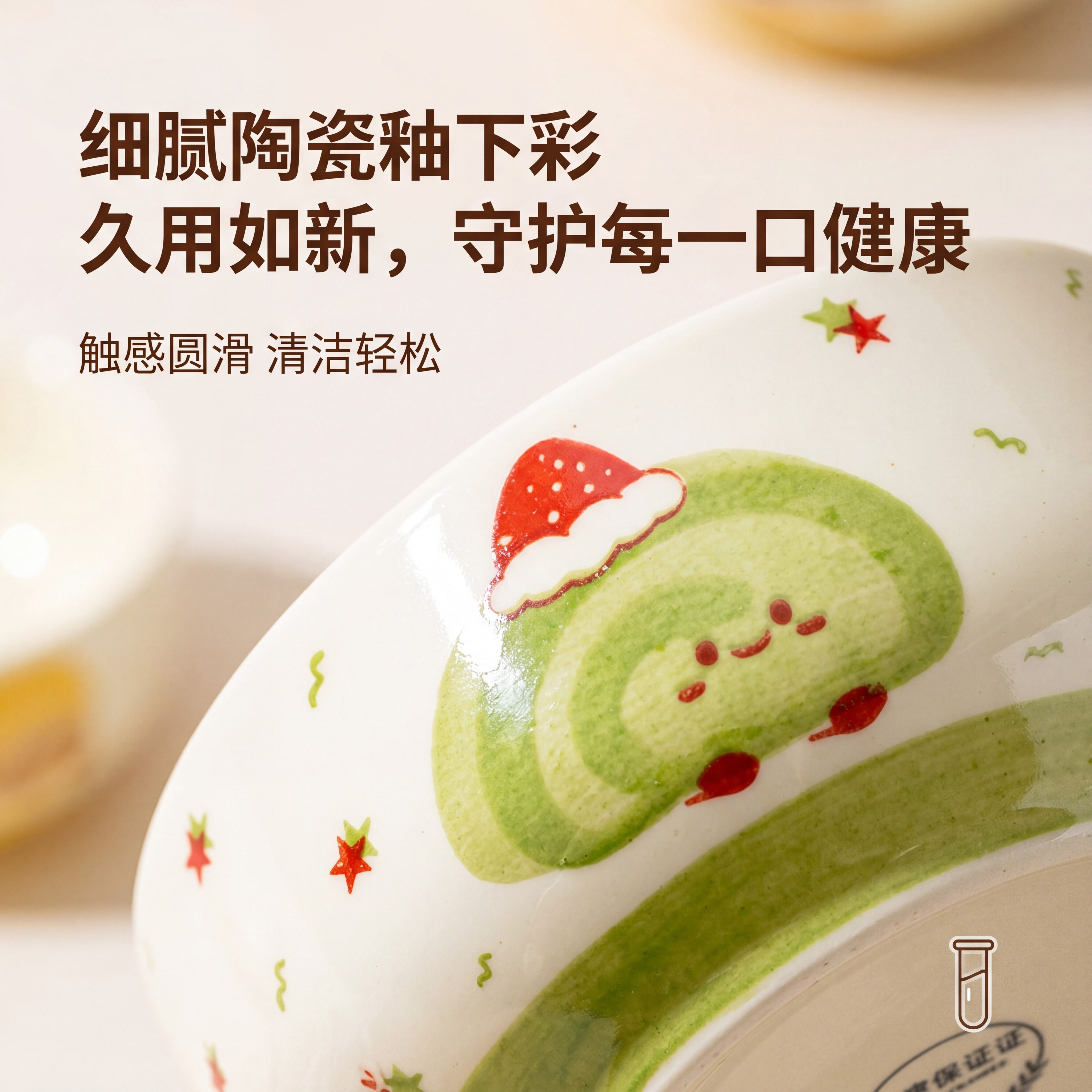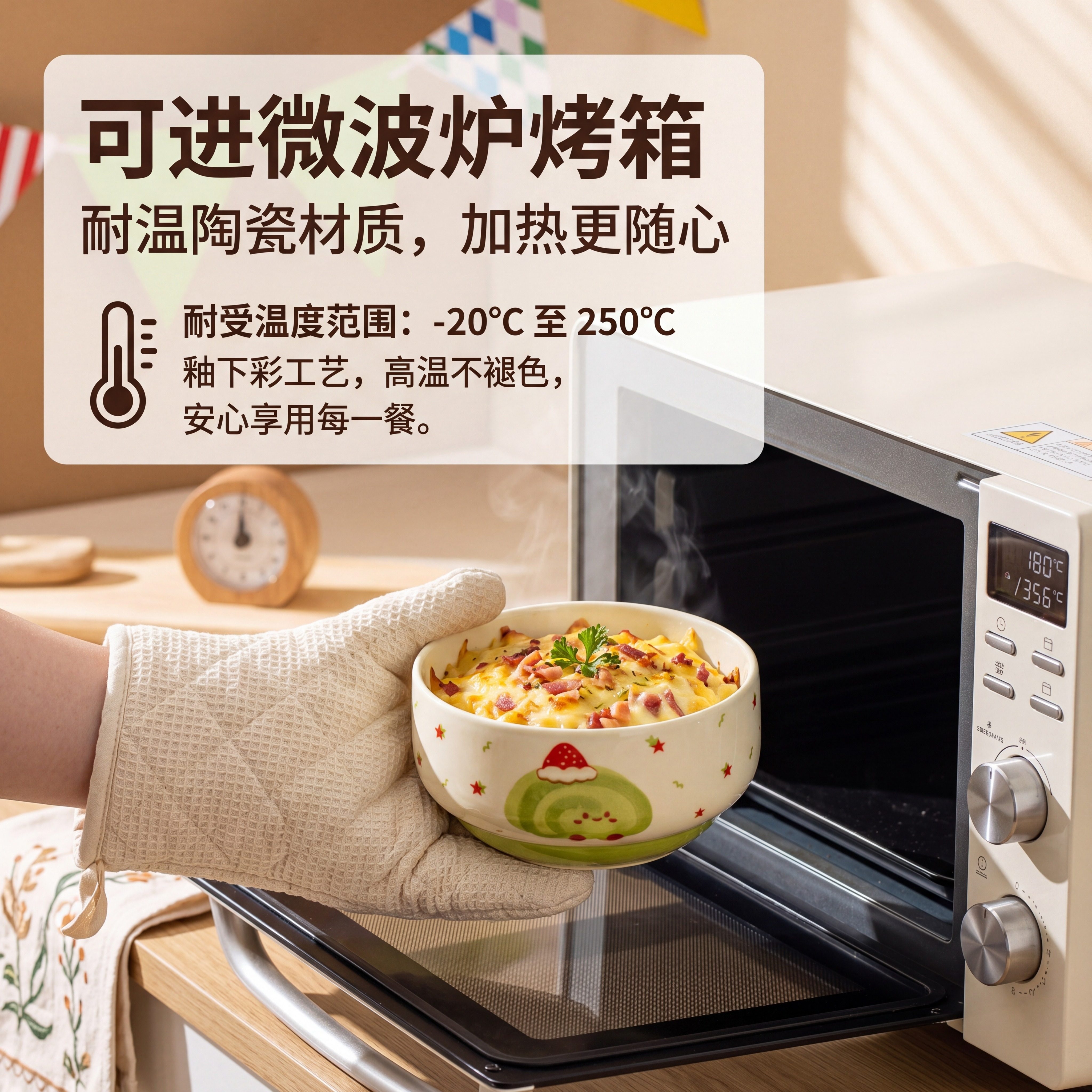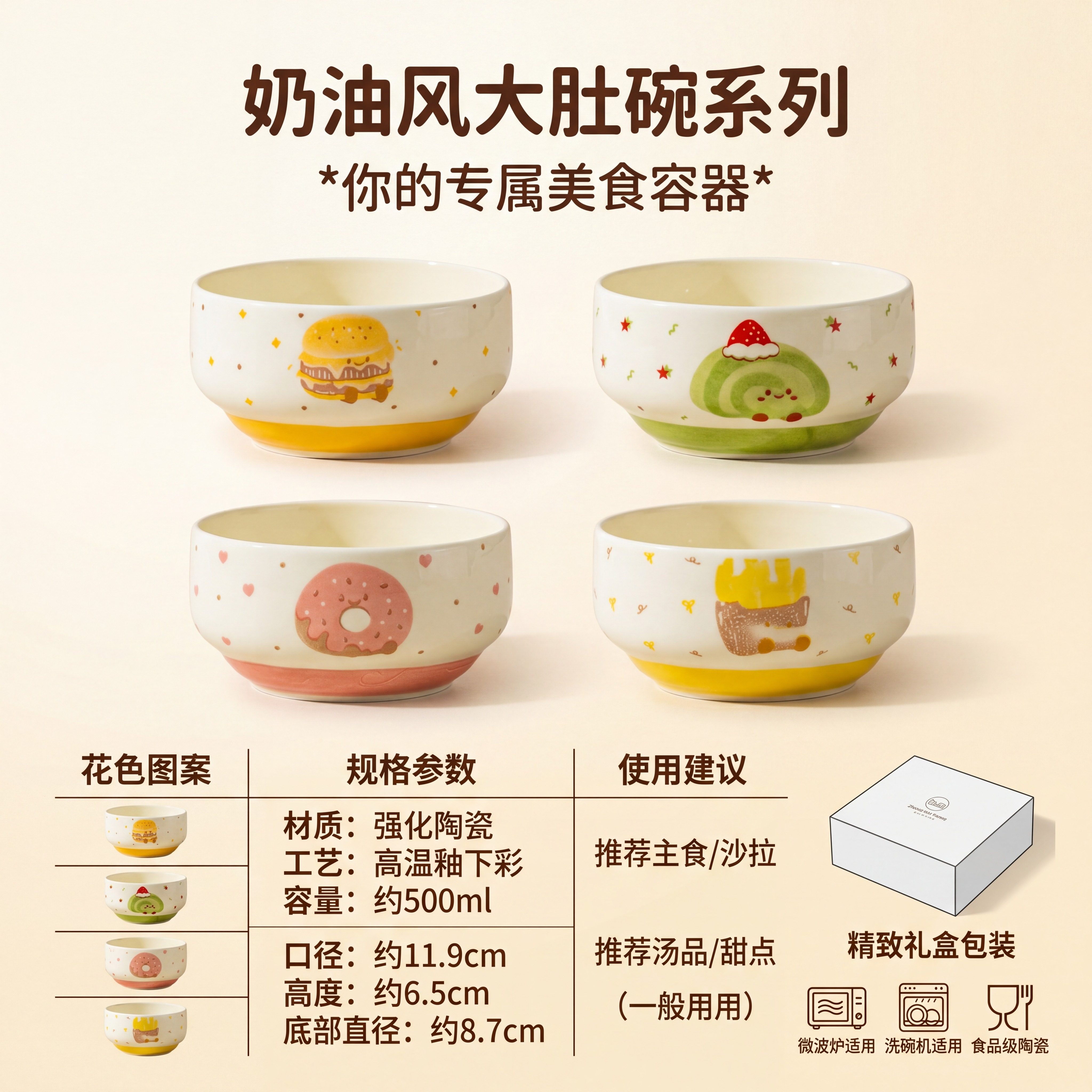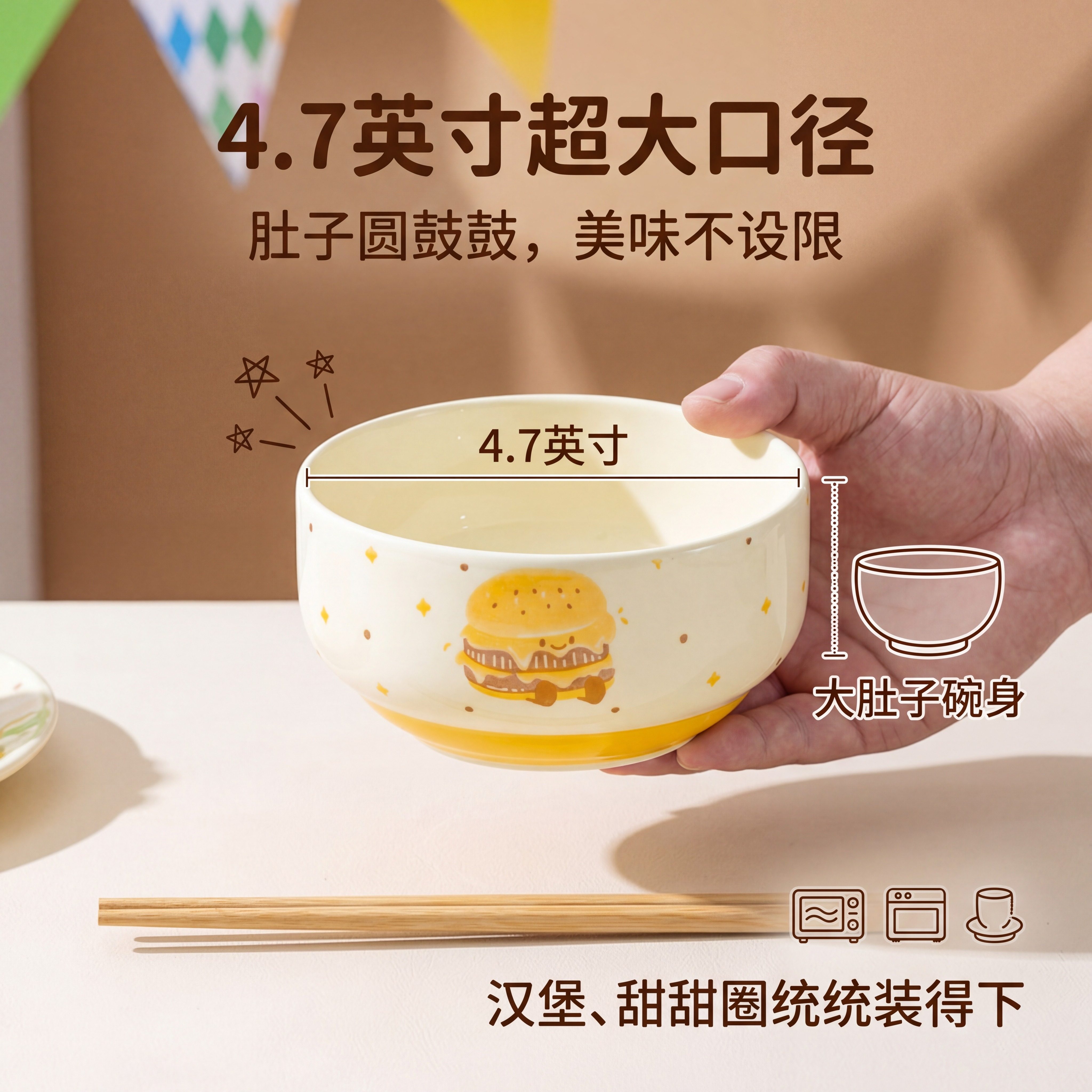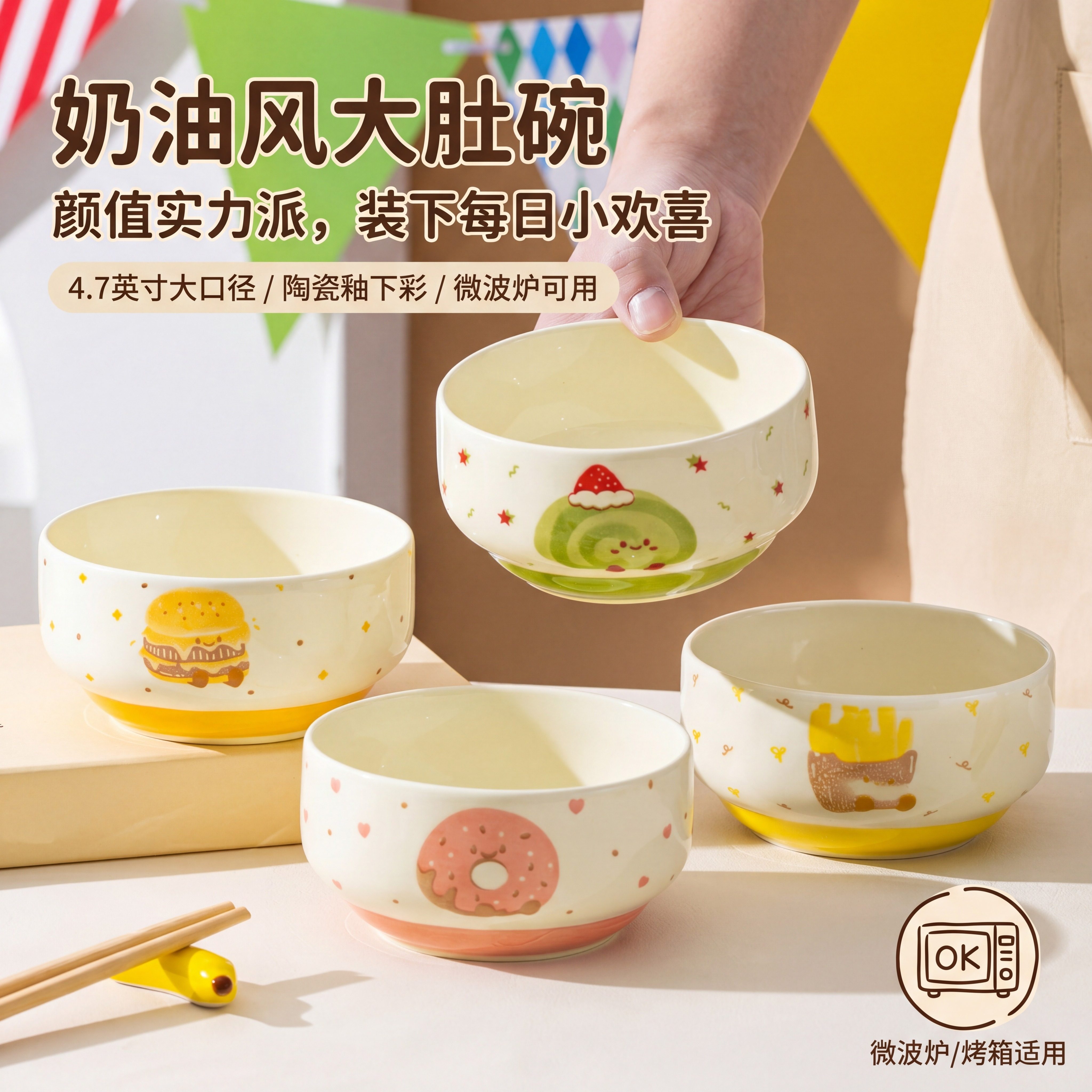 卡通陶瓷、米饭碗、儿童、家用、高颜值、高脚、甜品碗