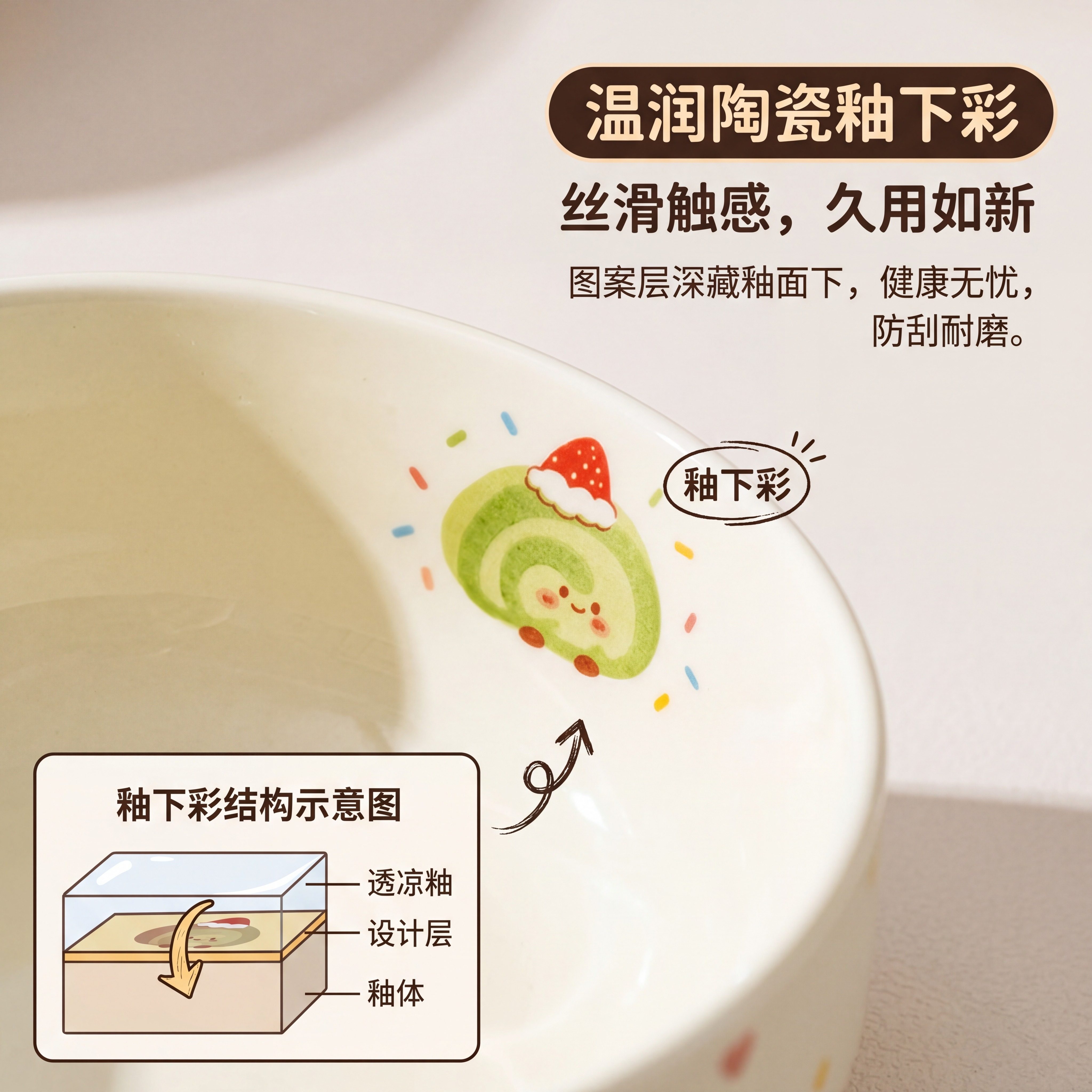 卡通陶瓷米饭碗碗儿童米饭碗家用高颜值高脚甜品碗酸奶碗水果碗