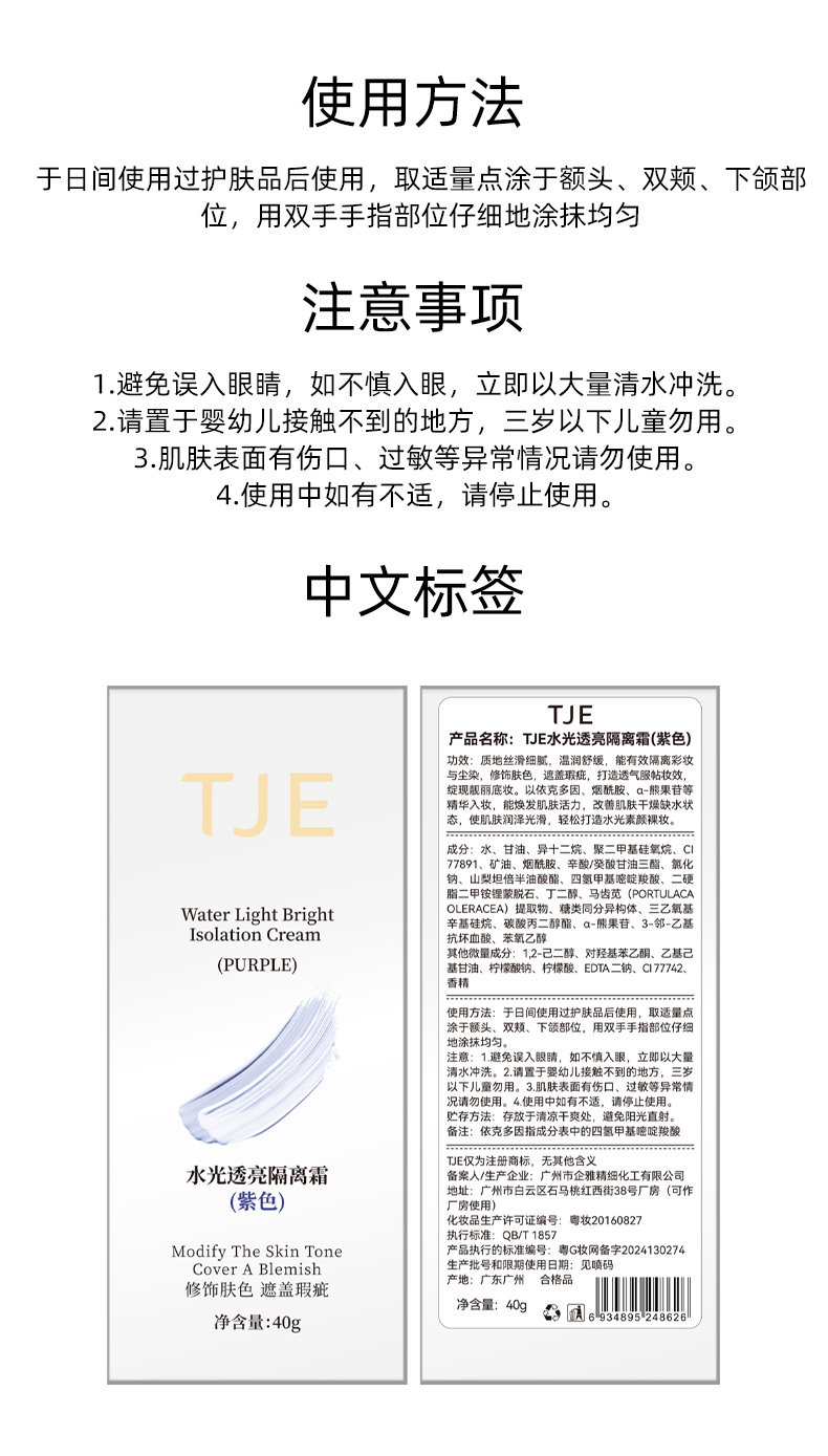 TJE隔离霜、40g、妆前乳、隐毛孔、水润保湿、遮瑕