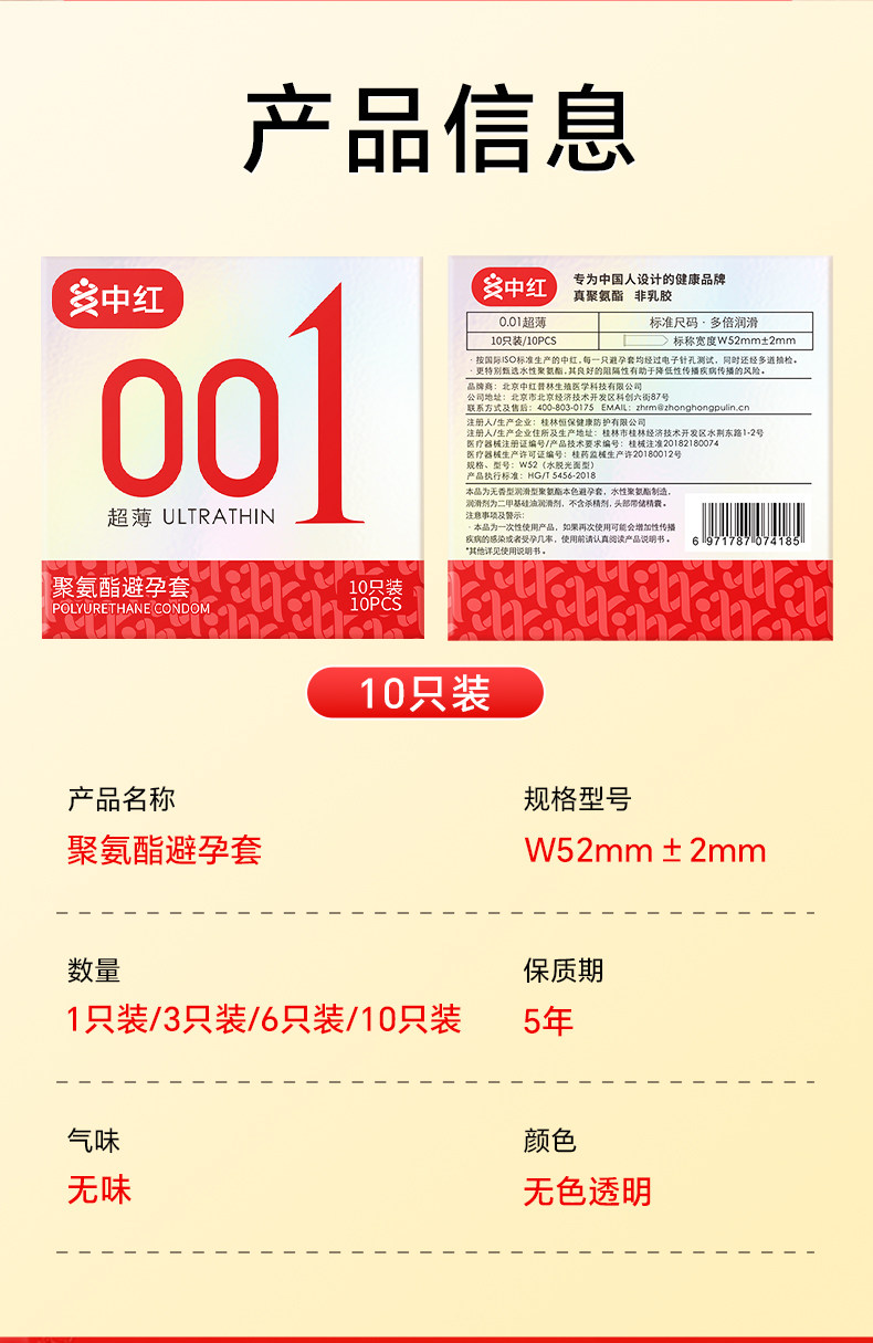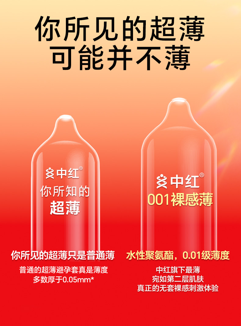 中红001避孕套、超薄隐形、0.01聚氨酯、安全套、情趣用品、成人用品