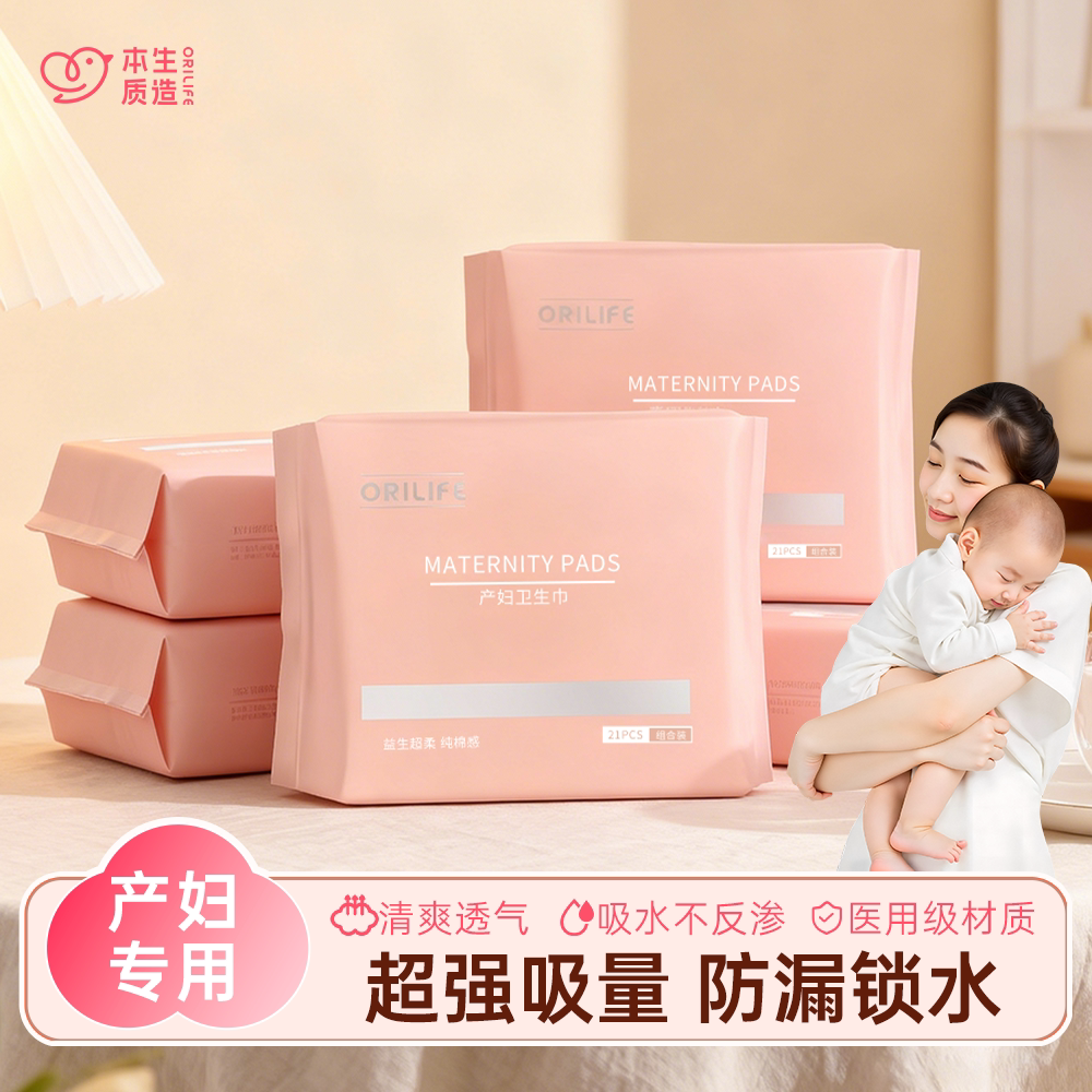 本生质造、产妇卫生巾、经期护理垫、卫生巾组合装、月子用品、21片