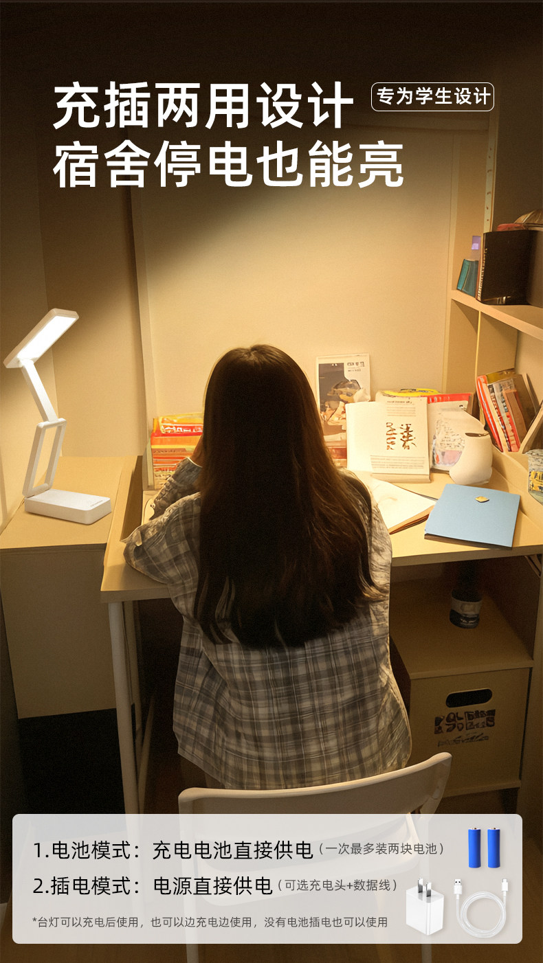 视贝、LED折叠充电台灯、大学生学习、护眼、宿舍阅读灯、便携续航